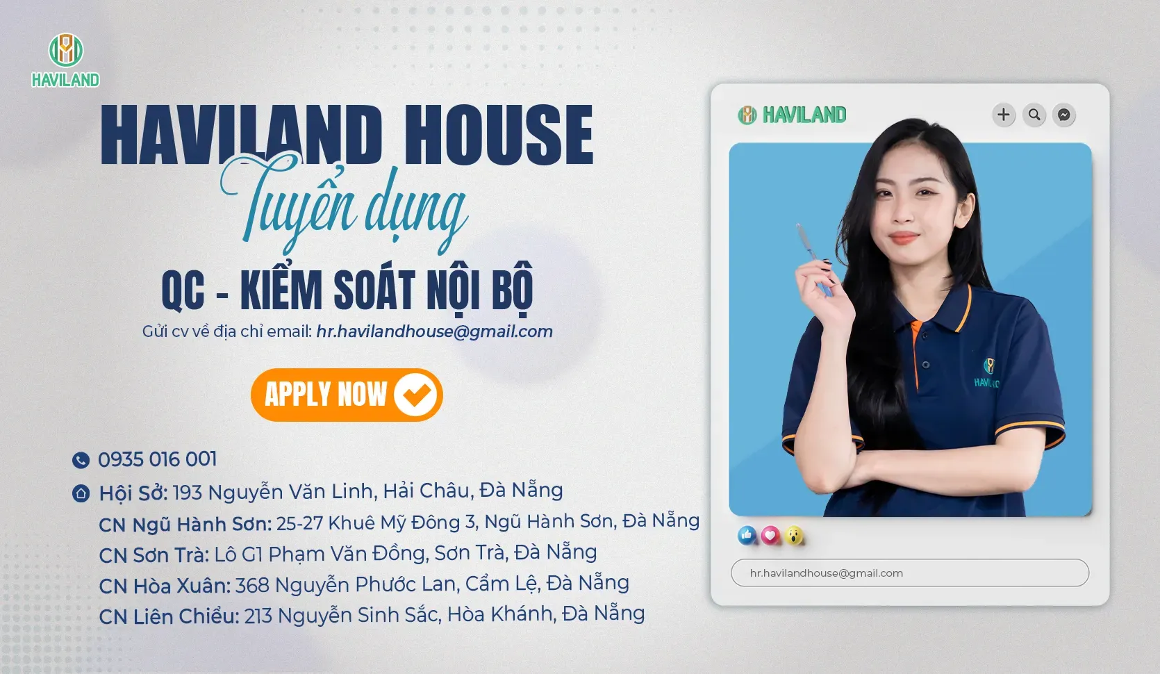Haviland tuyển dụng chuyên viên QC - Pháp lý Lương cơ bản từ 6.000.000đ - 8.000.000đ + thưởng tháng/quý, lương tháng 13...