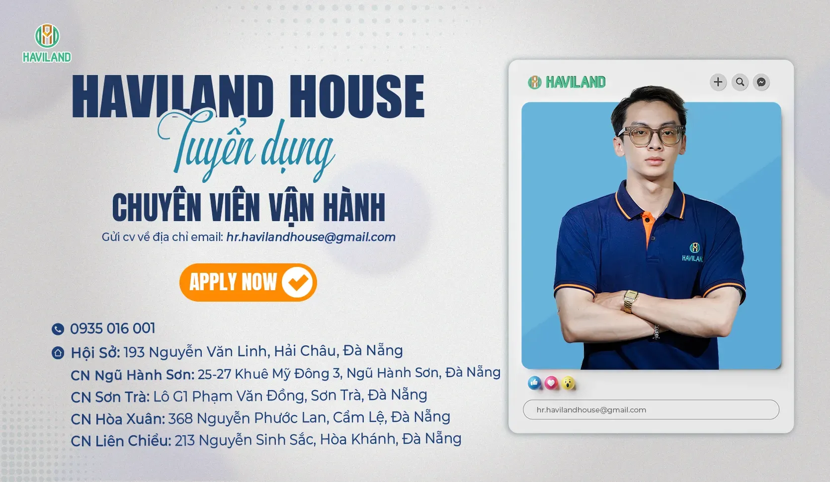 Haviland House tuyển dụng chuyên viên vận hành lương cơ bản 5.500.000 - 7.000.000 VNĐ + thưởng KPIs + phụ cấp + thưởng nóng tháng/quý/năm
