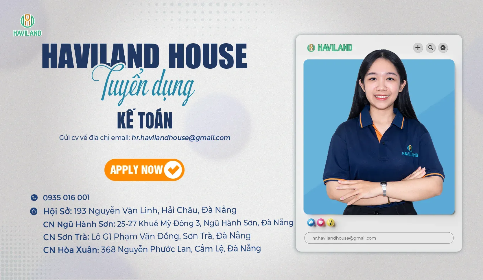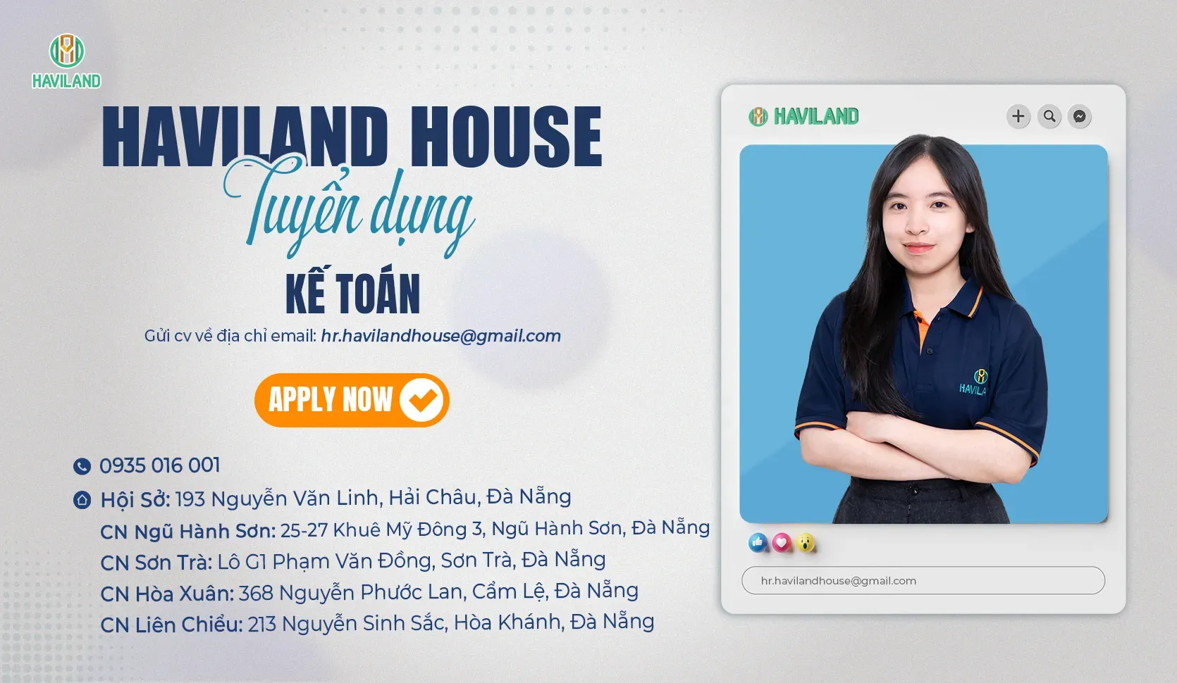 Haviland House tuyển dụng Kế toán với mức lương cơ bản 6-8tr . Hãy ứng tuyển ngay!