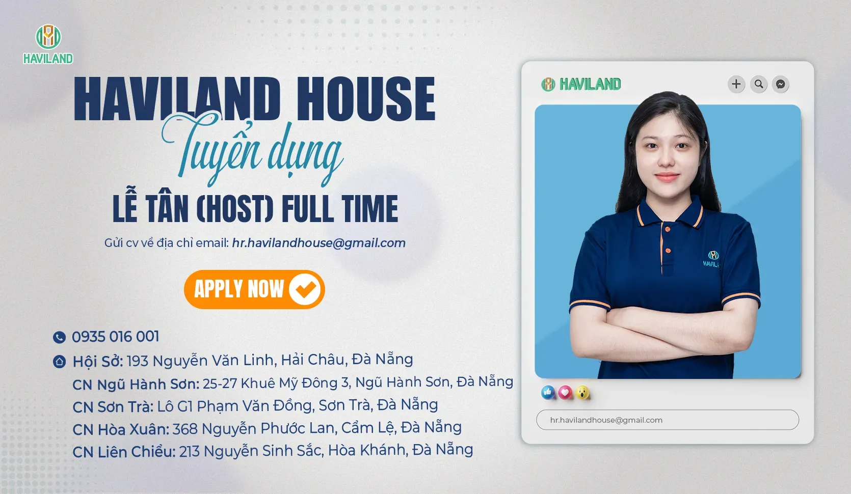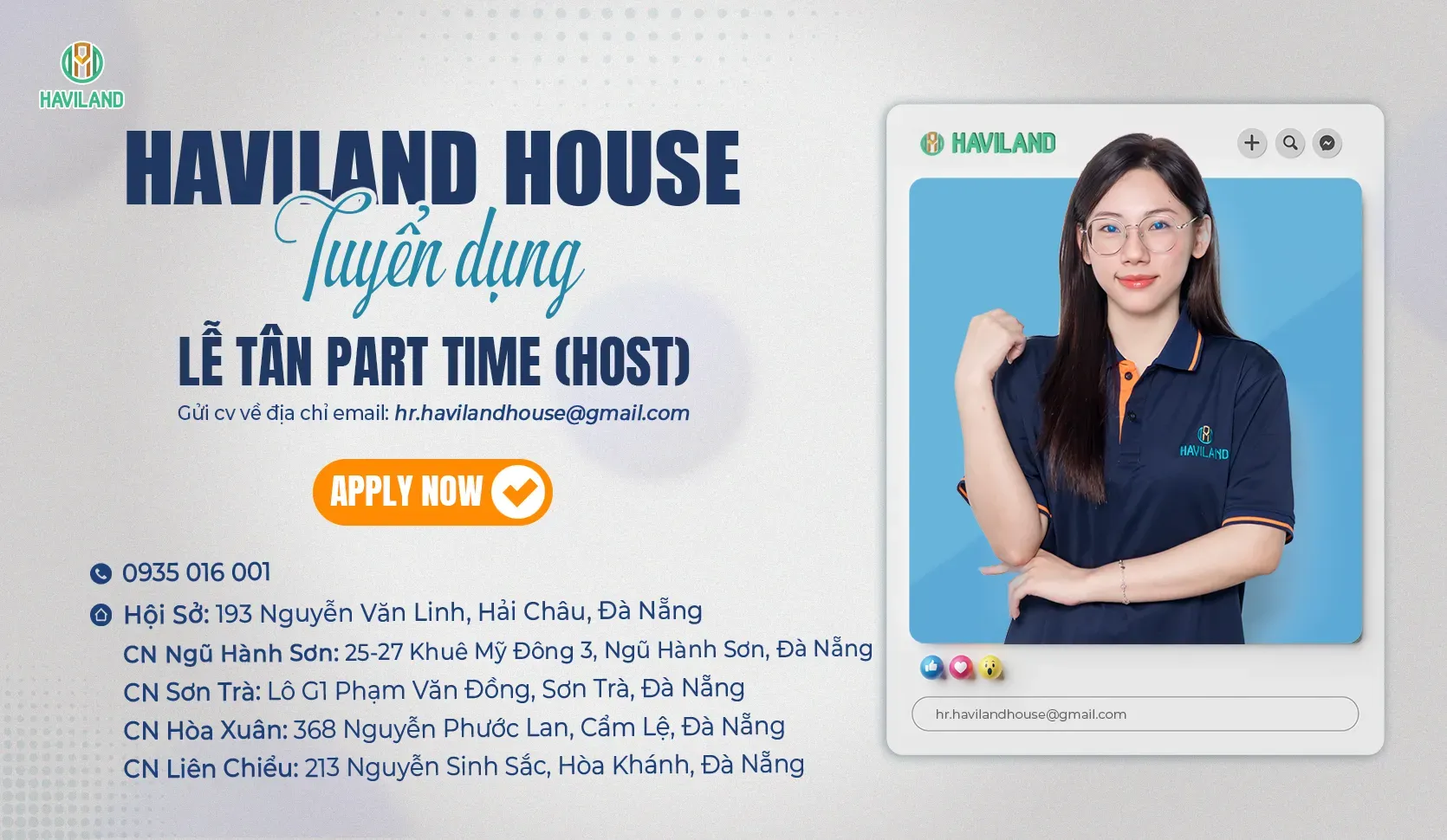 Haviland House tuyển dụng nhân viên lễ tân khách sạn Part Time, mức thu nhập 3.000.000đ + cơm ca