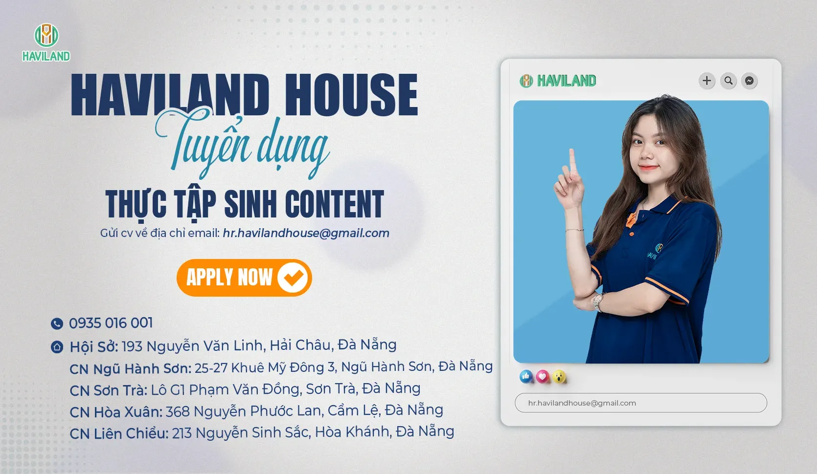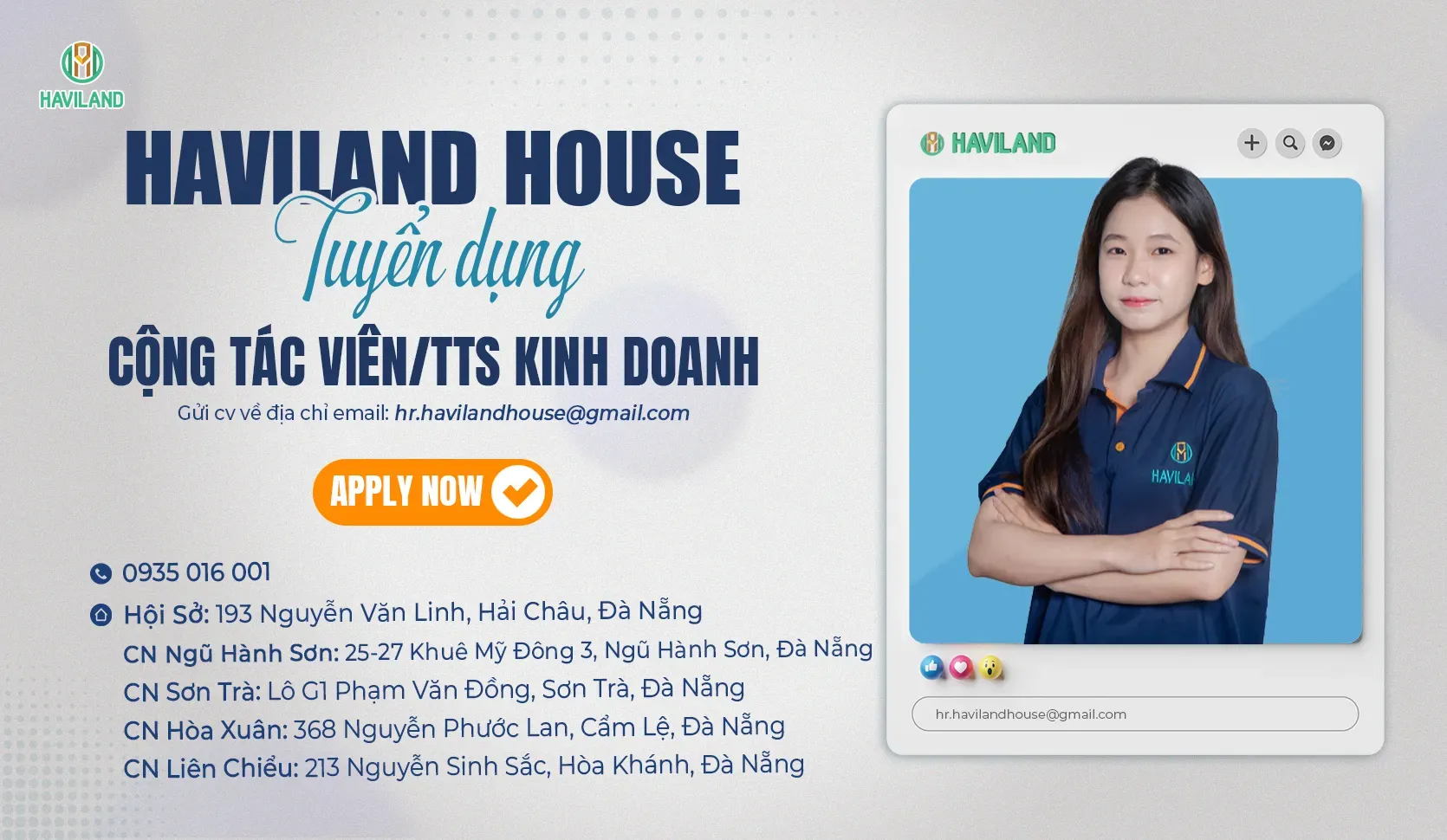 Haviland House tuyển dụng thực tập sinh kinh doanh, mức lương cơ bản 1,2-3tr + hoa hồng + thưởng nóng (từ 4 - 7 triệu). Hãy xem ngay!