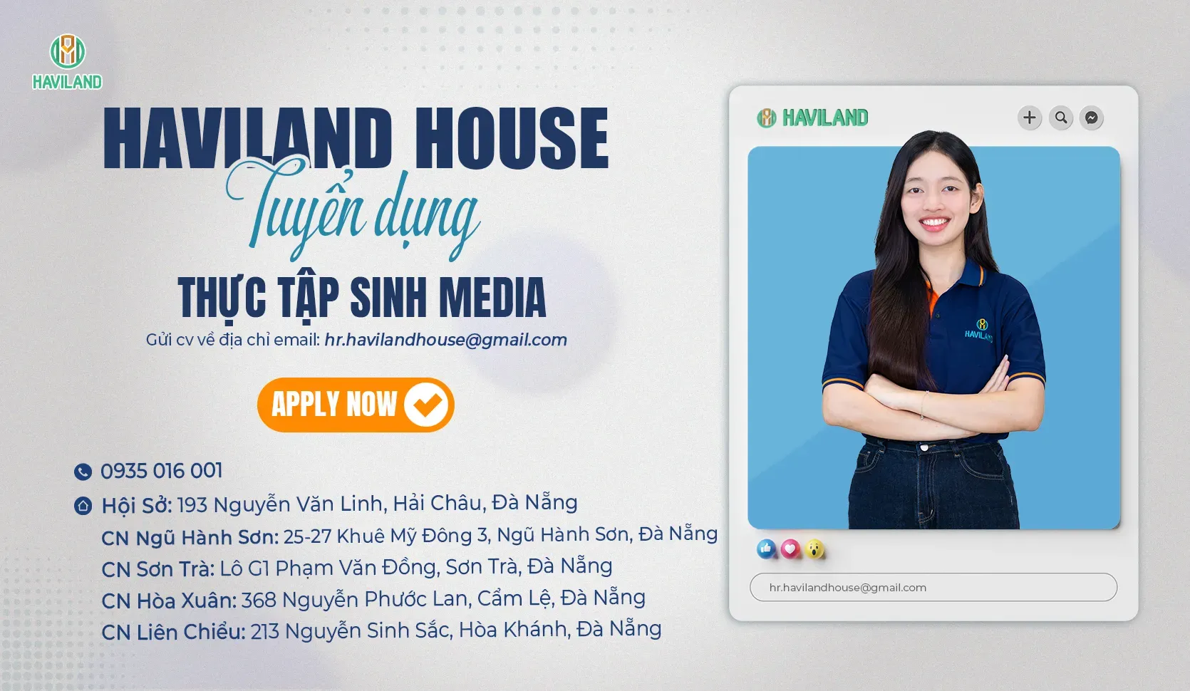 Haviland House tuyển dụng Thực tập sinh Media hỗ trợ phụ cấp 1.000.000đ - 2.000.000đ (trao đổi tại phỏng vấn), hưởng đầy đủ các chế độ theo luật lao động.