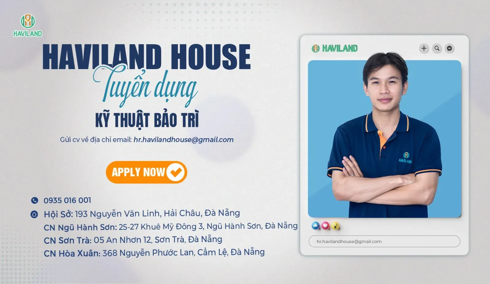 Haviland House tuyển dụng Kỹ thuật bảo trì Thu nhập: 6-8tr + thưởng nóng, thưởng chương trình tháng/quý và hưởng đầy đủ các chế độ theo luật lao động